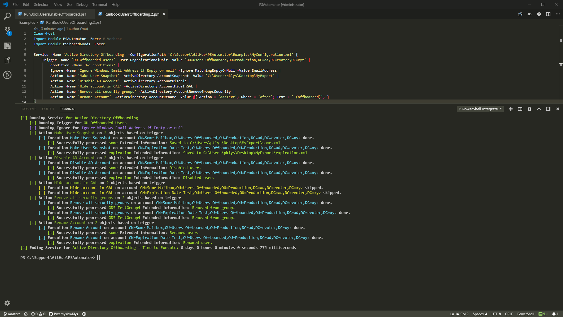 Service -Name 'Active Directory Offboarding' -ConfigurationPath 'C:\Support\GitHub\PSAutomator\Examples\MyConfiguration.xml' {
